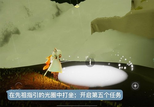 按照先祖的指引,来到光圈的位置打坐,这样就能开启任务。